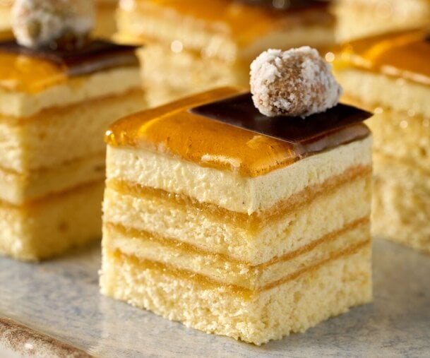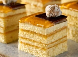 - Far stabilizzare in abbattitore negativo e glassare con MIRROR TROPICAL e porzionare 3 cm x 3 cm.